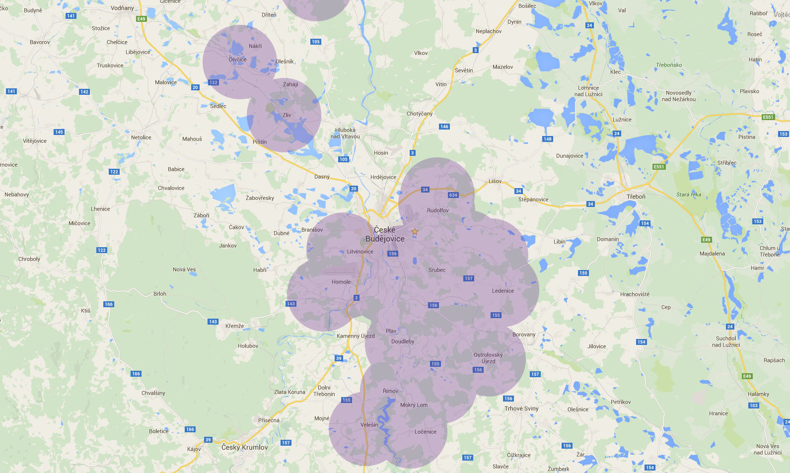 Naše vysílače jsou téměř všude v okolí Českých Budějovic.